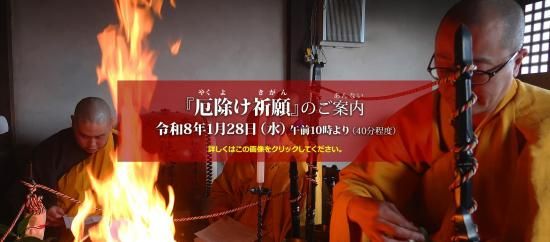 千光寺では、護摩堂ご本尊、不動明王さまのご宝前にて『厄除け祈願(やくよけきがん)』の護摩を修法し、懇ろに御祈願を致します。